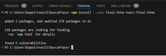 Para realizar el formulario vamos a instalar la siguiente dependencia